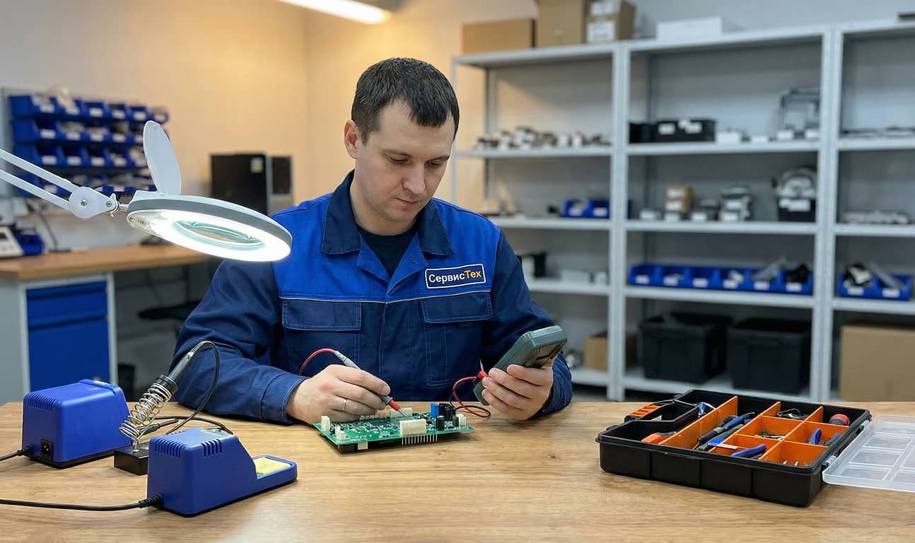 В сервисном центре «СервисТех» работают квалифицированные мастера со стажем от 5 лет. Они отлично разбираются в конструктивных особенностях современных бытовых приборов, оперативно находя типовые слабые места как в механике, так и в электронных модулях.